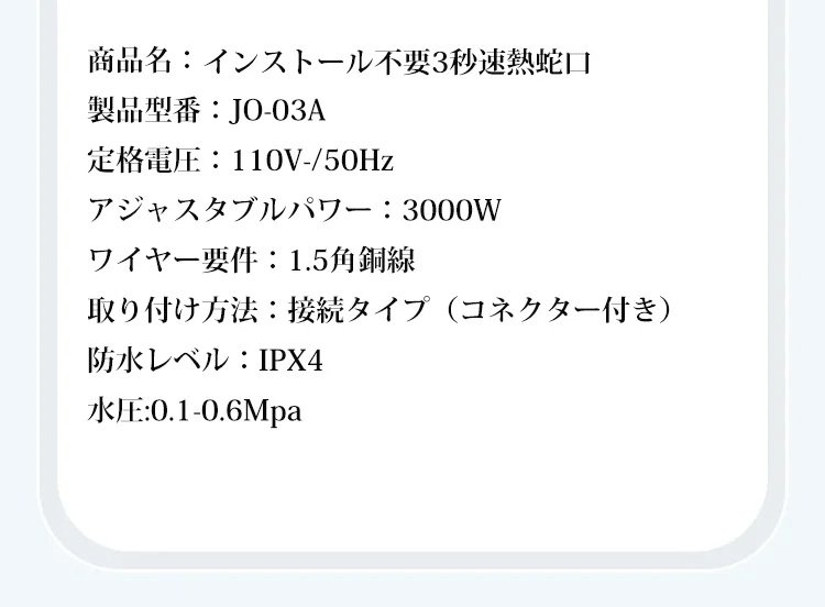 インストール不要3秒速熱蛇口